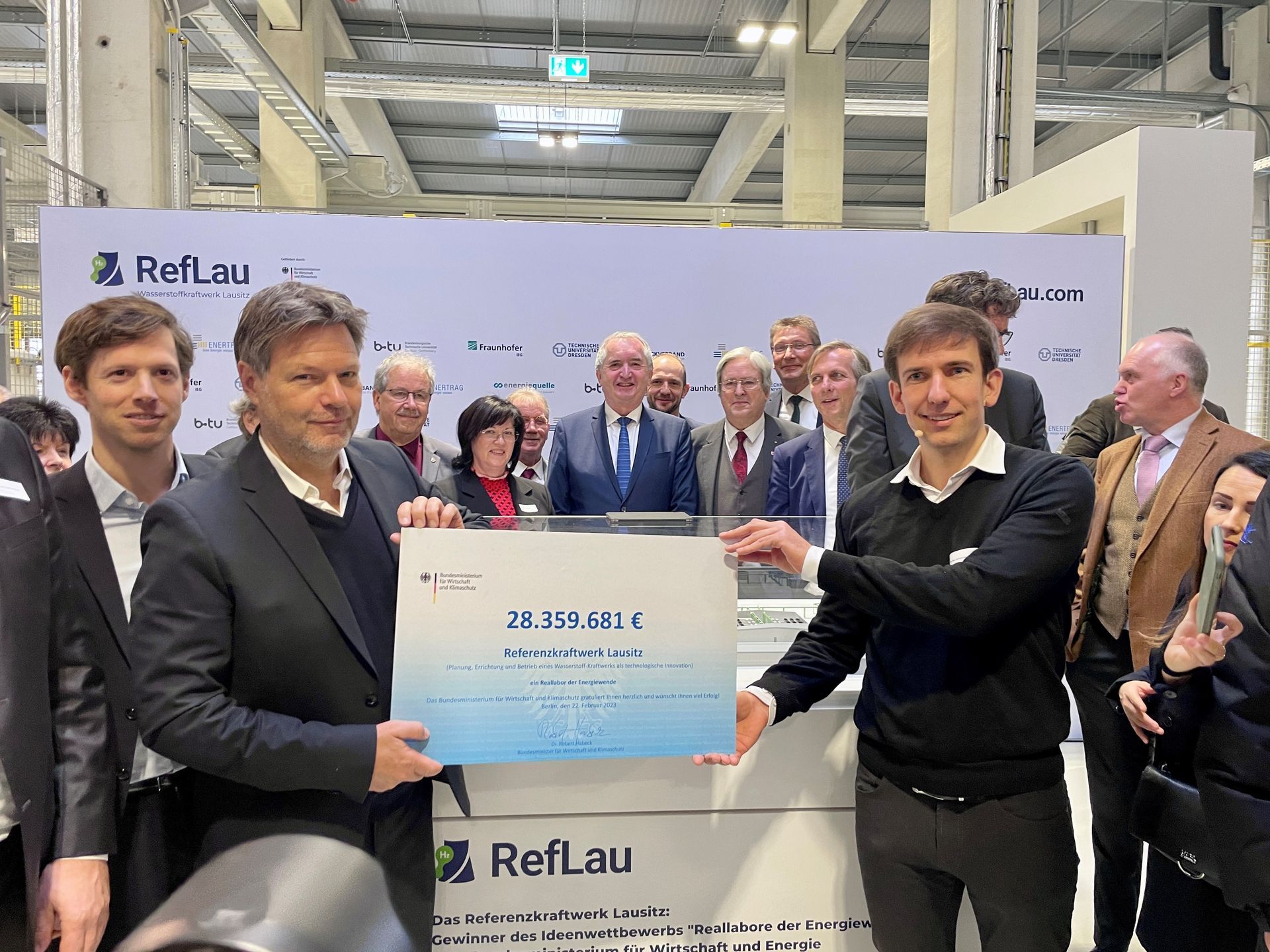 Am Mittwoch, 22.Februar, übergab Robert Habeck, Bundesminister für Wirtschaft und Klimaschutz (BMWK) der Referenzkraftwerk Lausitz GmbH (RefLau) und dem Forschungskonsortium, bestehend aus der Fraunhofer-Einrichtung für Energieinfrastrukturen und Geothermie IEG (Fraunhofer IEG), der Brandenburgischen Technischen Universität Cottbus-Senftenberg (BTU Cottbus-Senftenberg) und der Technischen Universität Dresden (TU Dresden) am Industriepark Schwarze Pumpe